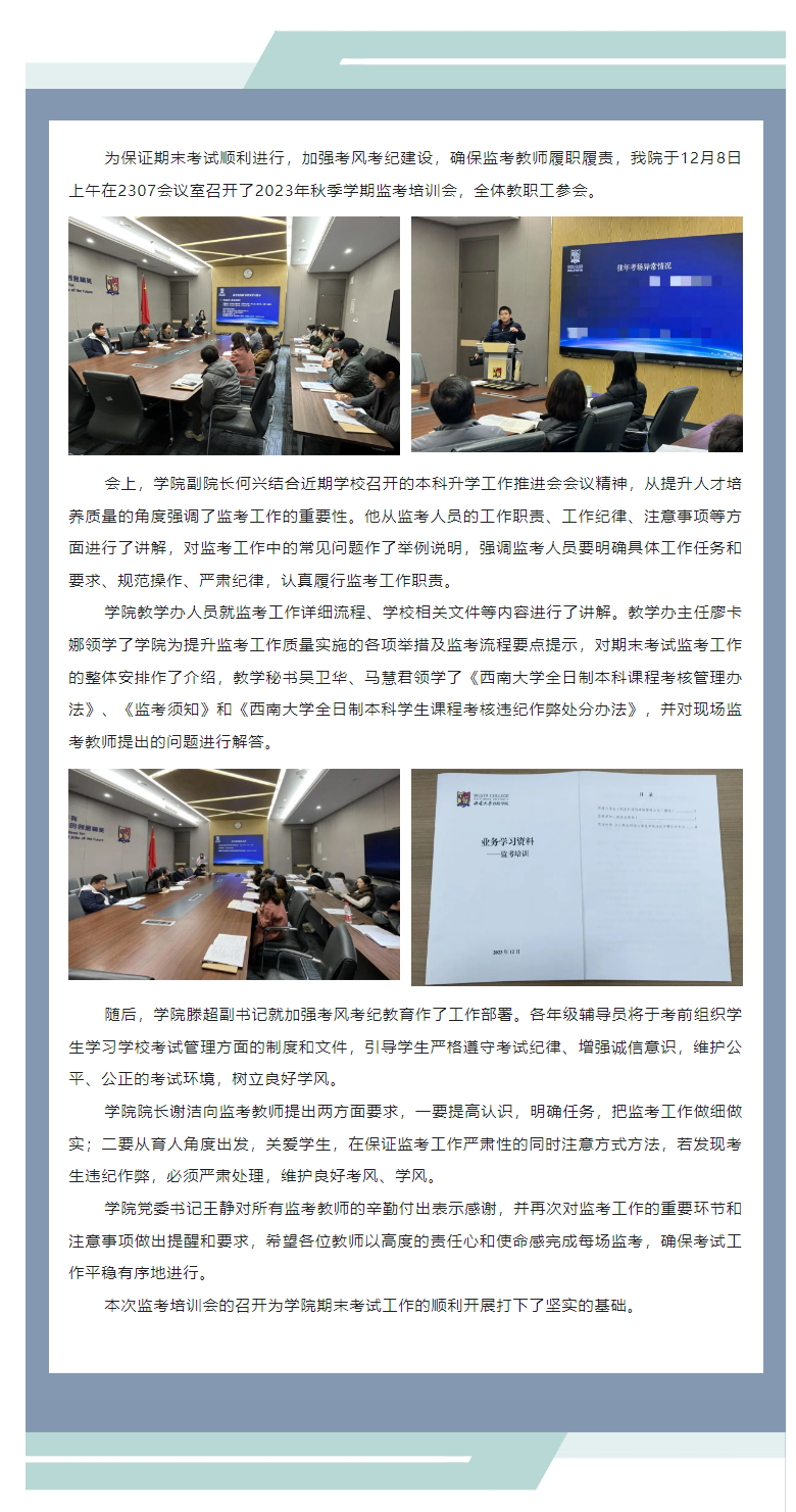 公司召开2023年秋季学期监考培训会