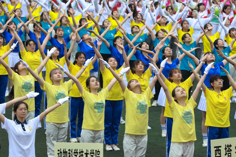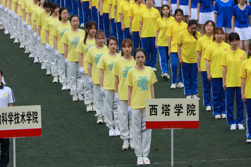 入场式上,60名西塔学子身着独特的“西塔蓝”,列成方阵昂首挺胸走过第二运动场主席台,整齐划一的队列和坚韧有力的动作展现了新时代青年的昂然风貌。“青春西塔,英姿勃发”,铿锵洪亮的口号承载着西塔人对未来的高远志向和精益求精的拼搏精神;“百年伟业,共赴征途”,豪情万丈的宣言诠释着西塔人肩负使命、砥砺奋斗的初心。大方的院服,自信的神情,井然的队列,成为场上一道亮丽的风景,赢得了现场阵阵掌声。