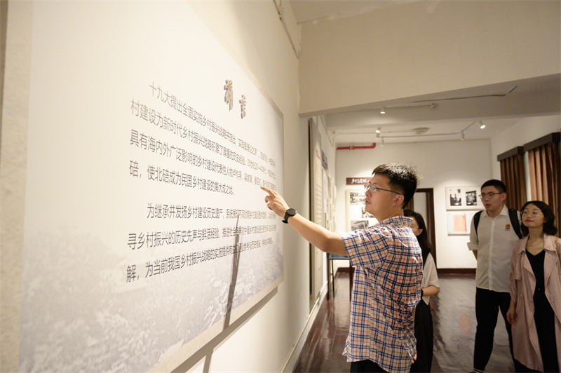 随后,张琨副书记带领师生们参观乡村振兴的发展探索纪念馆,向大家讲解中国乡村建设运动的历史。张书记讲到,在那样一个民生凋敝的年代,一批具有爱国热忱的有识之士纷纷投身推动乡村建设运动,探索社会治理的道路。无论是主张“实业救国”的张謇、“生活即教育”的陶行知、“公司不是培育员工而是教员工如何去培育社会”的卢作孚,还是中国平民教育家晏阳初、运用儒家文化助力乡村建设的梁漱溟、原川东师范公司董事长甘绩镛,他们都大力发展乡村教育、卫生事业,为改变中国乡村面貌作出卓越贡献。