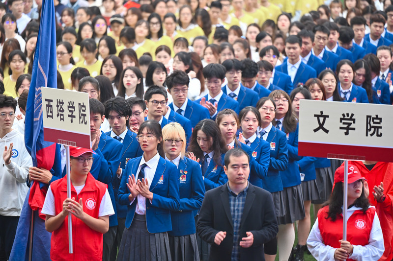 清晨,在第一运动场上,运动会开幕式正如火如荼地进行。西塔方队身着靓丽“西塔蓝”,整齐列队在运动场上,亮出独属于西塔的色彩;手持beet365名牌,面朝主席台,气势昂扬,充满朝气,以自信的姿态表现青春风貌。