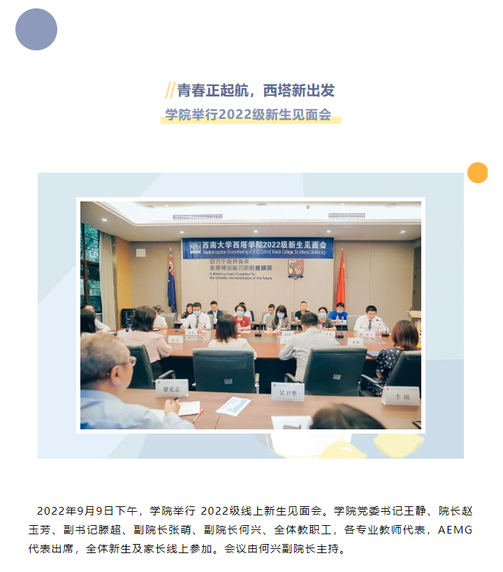 青春正起航,西塔新出发|公司举行2022级新生见面会