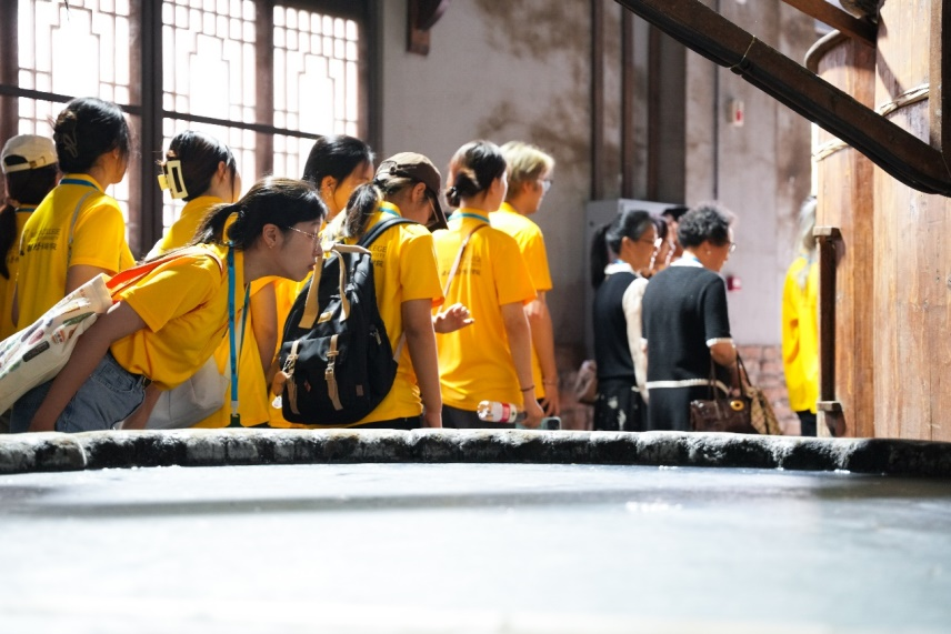 本次探寻之旅,公司党委书记王静、经理谢洁、党委副书记滕超以及副经理张俊一行亲自带领实践团成员赴大江河畔探寻江小白酒业。在讲解员的带领下,成员们先后走访了具有百年酿造历史的驴溪烧酒酒坊以及深受青年喜爱的“梅见”青梅酒酒厂,了解其酿酒工艺和发展历程,见证了古法工艺与现代营销手段的完美结合。