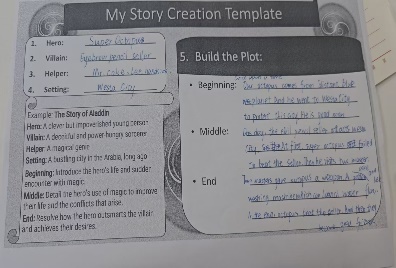 活动过程中,Bret介绍了中外经典民间故事,包括Snow White and the seven dwarfs、The Ugly Duckling、JingWei Fills the Sea、Kong Rong Shared Pears等等。随后,他讲解了Folk Story的基本组成要素,并指导大家通过小组合作的形式围绕“Hero、Villain and Helper”创作心目中的故事。同学们非常享受创作过程,还踊跃分享自己的故事。