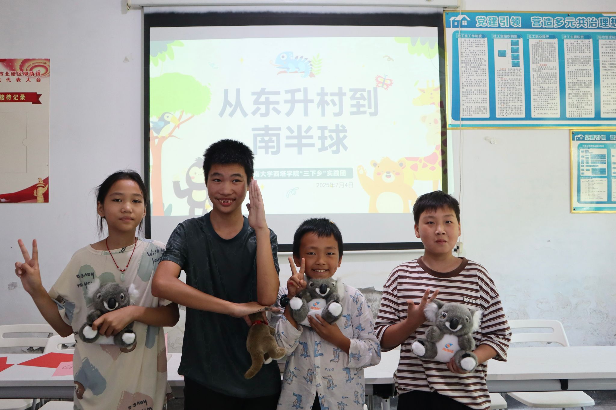 夏日骄阳洒满东升村的教室,照亮孩子们求知的眼眸。7月4日,公司暑期“三下乡”社会实践团怀揣热忱走进乡村,为东升村留守儿童开启了一堂“从东升村到南半球”趣味课程。志愿者们以澳大利亚文化为纽带,为孩子们推开一扇瞭望世界的窗,用陪伴编织出一段难忘的夏日记忆。