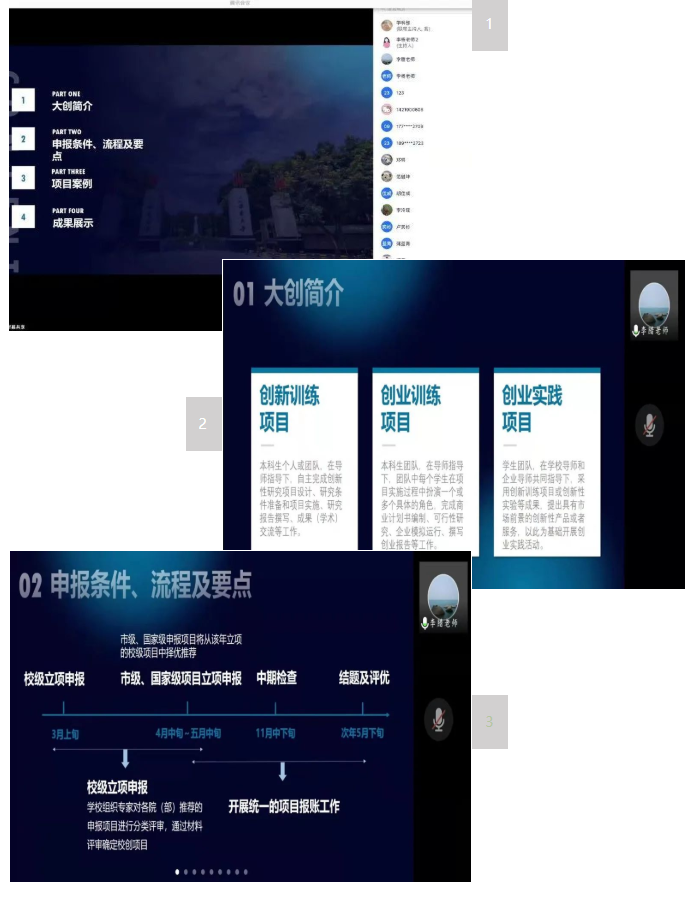 在提问交流环节,同学们积极参与,并就申报资格、研究周期、项目研究时间分配等方面提出疑问,线上的老师和学姐们耐心地为同学们答疑解惑。