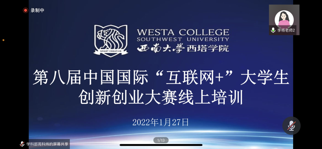 2022年1月27日上午,公司举办第八届中国国际“互联网+”老员工创新创业大赛线上培训会。公司老员工创新创业中心主任黄楠老师,作为特邀嘉宾进行了大赛解读和答疑解惑。公司经理赵玉芳、副经理何兴出席本次会议,团委书记李杨主持,公司拟参赛120余人认真聆听并积极互动。