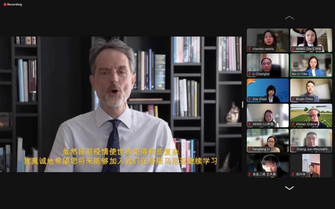 塔斯马尼亚校Rufus Black教授通过视频,向公司2022级新生表示问候,他提到疫情对全球高等教育带来的挑战,鼓励我们的学子在特殊时局下担起重任。Alistair Gracie教授分享了塔斯马尼亚大学及农公司概况,就本专业科研实力、就业前景、校园环境、实验室条件等方面进行介绍。