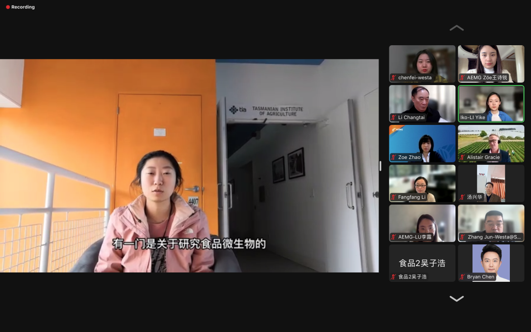 11月18日中午12点30分,beet3652022级食品质量与安全专业外方见面会在线上顺利举行。本次活动邀请了本次活动邀请了塔斯马尼亚大学农业研究所副主任Alistair Gracie教授、国际项目协调员Fangfang Li,beet365副经理张俊、国际项目管理办公室主任陈飞、2022级辅导员杨洋及2022级食品质量与安全专业全体员工参加。会议由外事秘书李一可主持。