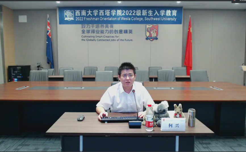 何兴副经理对新生进行了学业启航教育。他详细介绍了公司四个专业的培养方案,为同学们解读了学业、生活等方面的相关文件精神。最后,何经理勉励全体2022级西塔学子保持学习激情,树立明确目标,脚踏实地,诚信应考,争取在学术科研方面取得优异成绩。