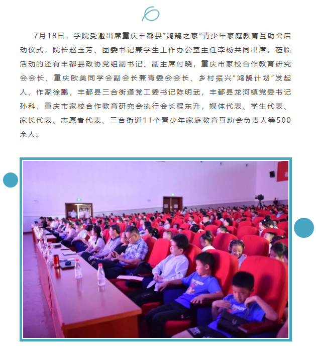 公司受邀出席重庆丰都县“鸿鹄之家”青少年家庭教育互助会启动仪式