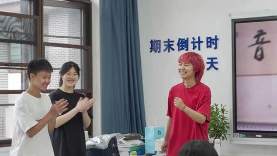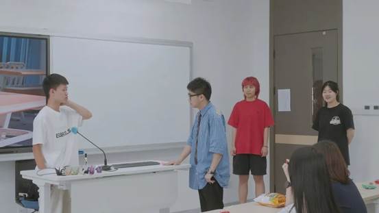 2019级员工王地、陈俪宁、林宜新及2021级员工吴宇辉、胡锦羽共同演绎了自主编导的红色青春剧场“在青春赛道上奋力跑出当代青年的最好成绩”。剧中预备党员小地同学与差生小吴同学互相帮助、彼此成就,最终实现自我价值。同学们的生动表演引得场下掌声、笑声交互不断,现场反响热烈,并引发激烈讨论。