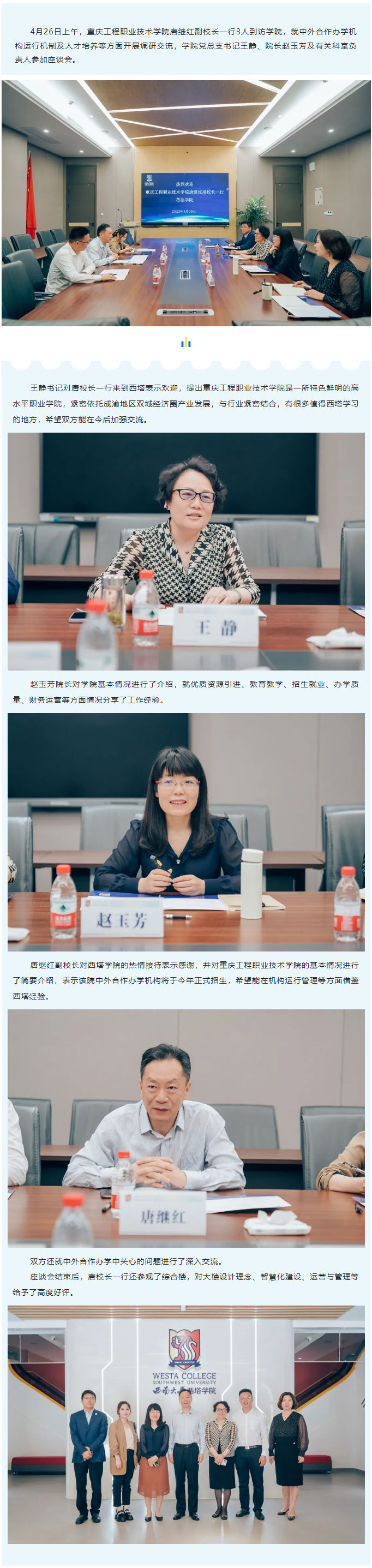 重庆工程职业技术公司唐继红副董事长一行到公司调研交流