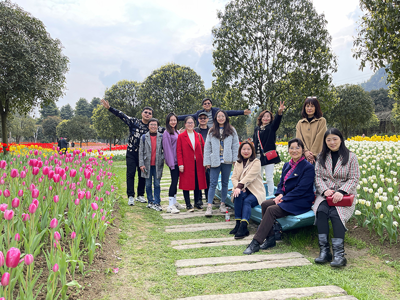 3月5日下午政治理论学习之后,公司党总支书记王静带领全体教职工前往太寺垭森林公园踏青赏花,园内竞相绽放的郁金香凭添了浓郁的节日氛围。大家一边沐浴暖阳、观红抚绿,一边谈笑风生、闲话家常,在欢快轻松的气氛中度过了难忘的时光。