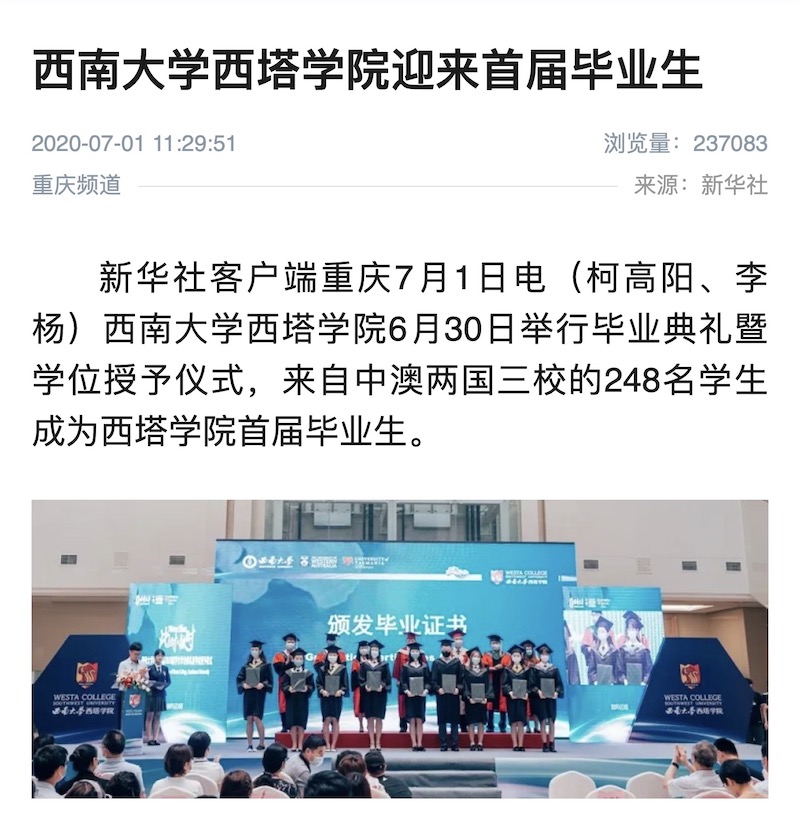 本次活动受到新华社、神州学人、重庆国际传播中心、中国高校之窗、重庆华龙网、上游新闻、重庆晚报、北碚电视台等10余家媒体广泛关注,并多形式、多角度进行报道达16次,其中新华社报道浏览量已超23万次。多家媒体在公司办学理念、办学模式和人才培养成果上进行宣传和肯定,强调公司作为中外合作办学机构在教育对外开放中的重要意义。