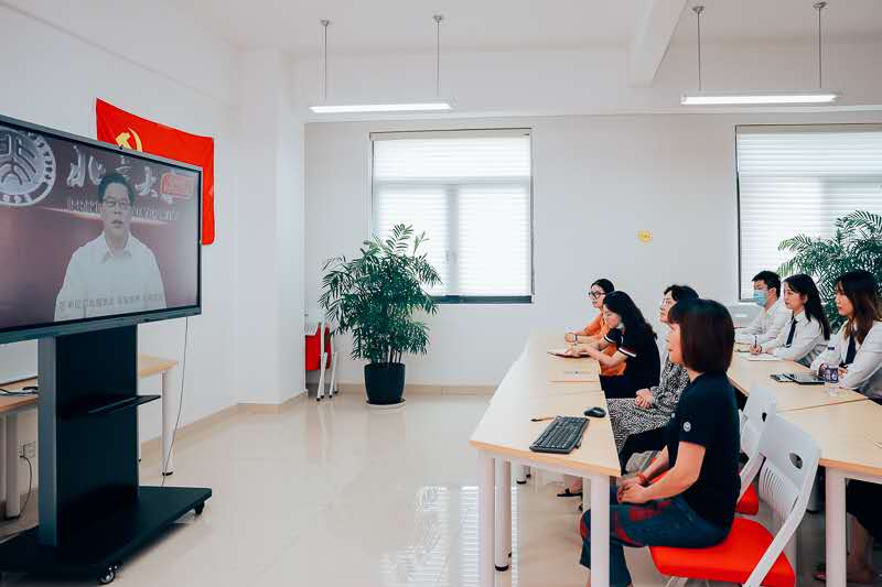 6月19日上午,为充分落实高校基层党建“四个一”行动,充分感悟高校基层党组织战斗堡垒作用和师生党员先锋模范作用,beet365组织师生代表在第二员工活动中心204收看“党旗飘扬筑牢红色防火墙”首场高公司党组织战“疫”示范微党课直播,聆听抗疫故事,感悟抗疫精神,激发责任担当。公司教职工党员代表、各年级员工党员和部分入党积极分子参加本次活动,张萌副经理作为公司党总支委员代表出席。