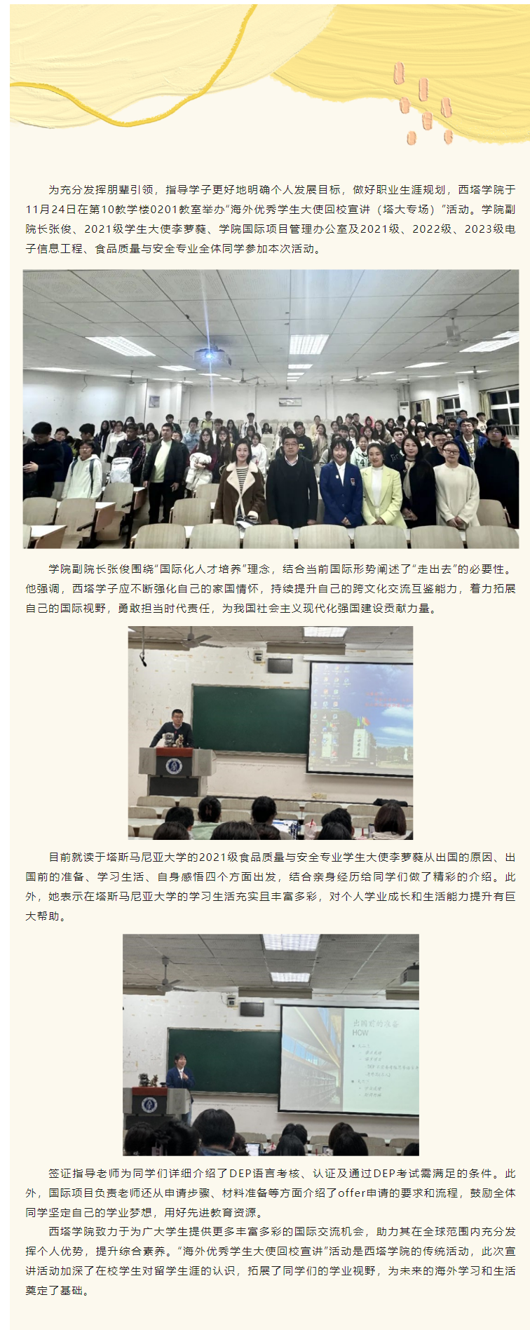 公司举办“海外优秀员工大使回校宣讲(塔大专场)”活动