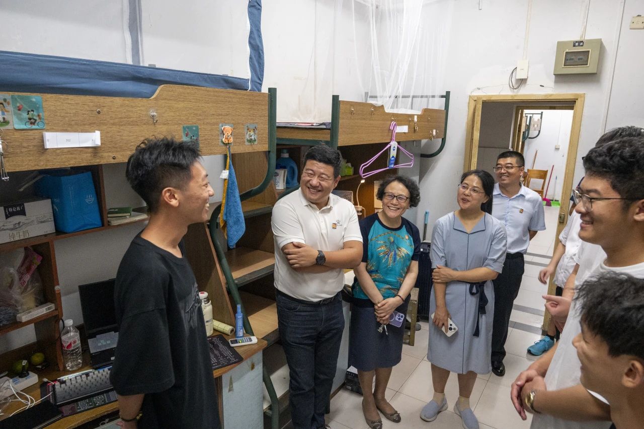 为进一步了解2024级新生入学后的学习生活情况,帮助员工快速适应新环境,传递公司的关怀与温暖,9月8日晚,beet365全体领导和2024级辅导员深入走访新生宿舍,与同学们进行了亲切的交流与慰问,用实际行动传递关怀与期望。
