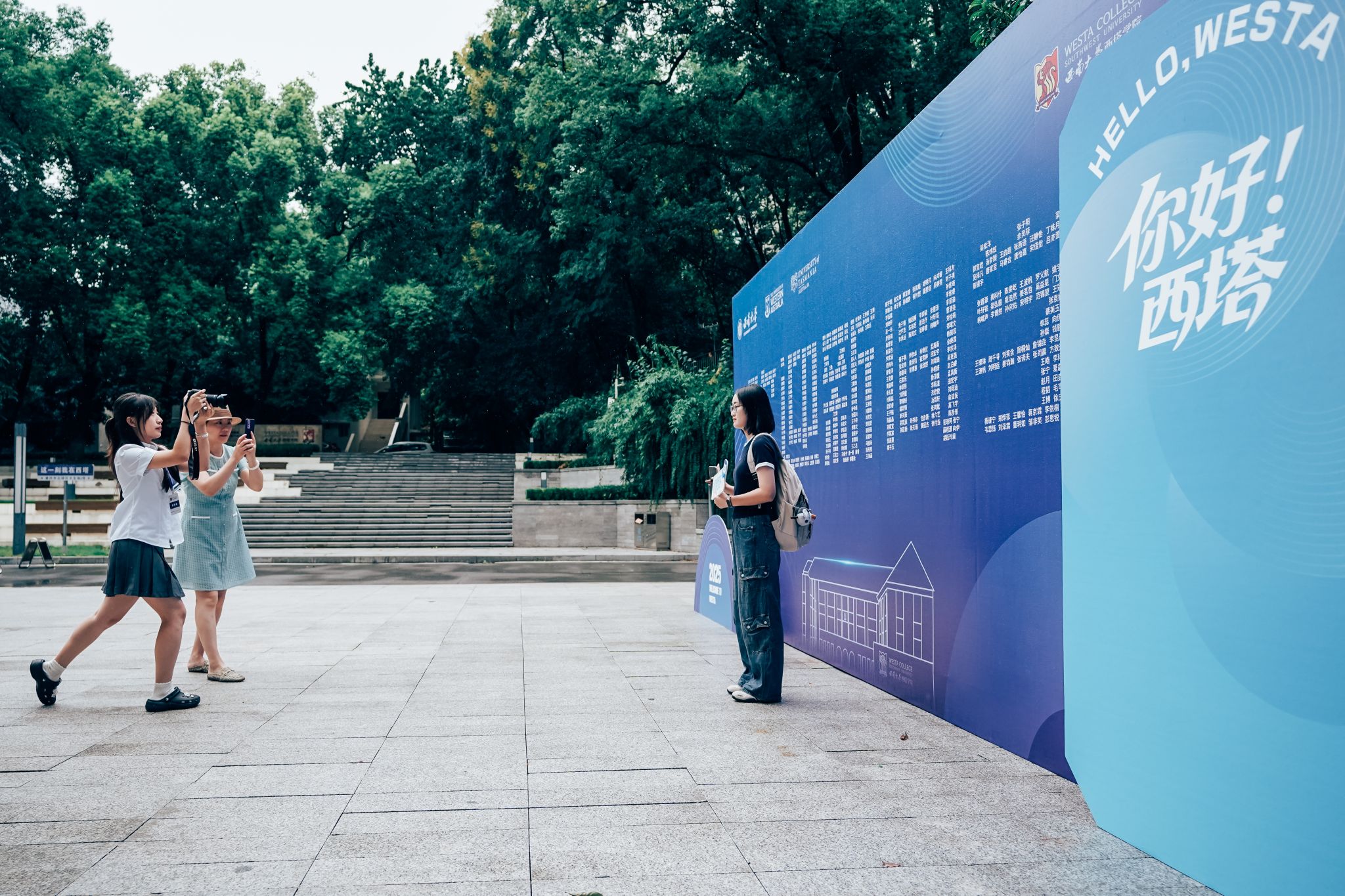公司还别具匠心地设置了新生互动打卡区,每位新生的名字组成了“欢迎新同学”五个大字,吸引许多新生驻足留念,快门声里定格下与西塔初见的美好瞬间。