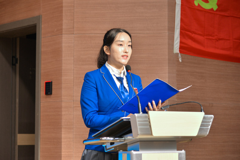 2021级经济学二班的刘馨月同学作为学员代表发言。她首先感谢公司搭建的全面、系统学习党的理论知识的平台。她表示会珍惜本次难得的机会,不断提升综合素养。她还郑重承诺,带头做到“励志明理,坚毅图强,勤学自律”,争做一名在新征程中呼唤新作为的西塔学子。