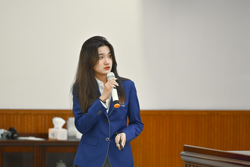 图为黑龙江绥化小分队成员2020级经济学专业赵婧昕进行分享