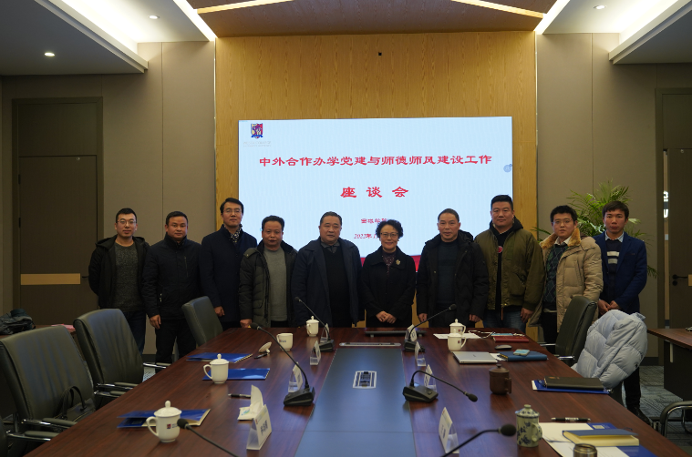 1月17日上午,公司召开中外合作办学党建与师德师风建设工作座谈会,特别邀请四个办学支撑公司党委书记、教学副经理及专业负责人出席;公司在家院领导、有关科室负责人及党支部书记参加会议,会议由何兴副经理主持。