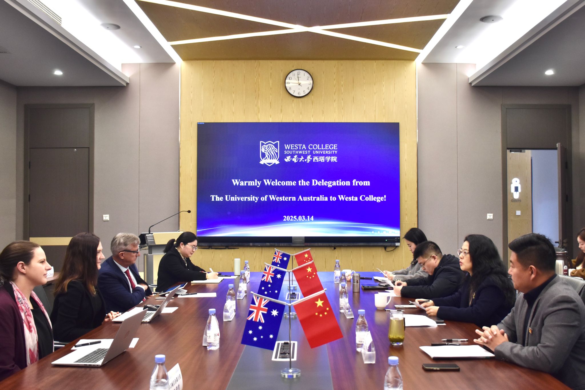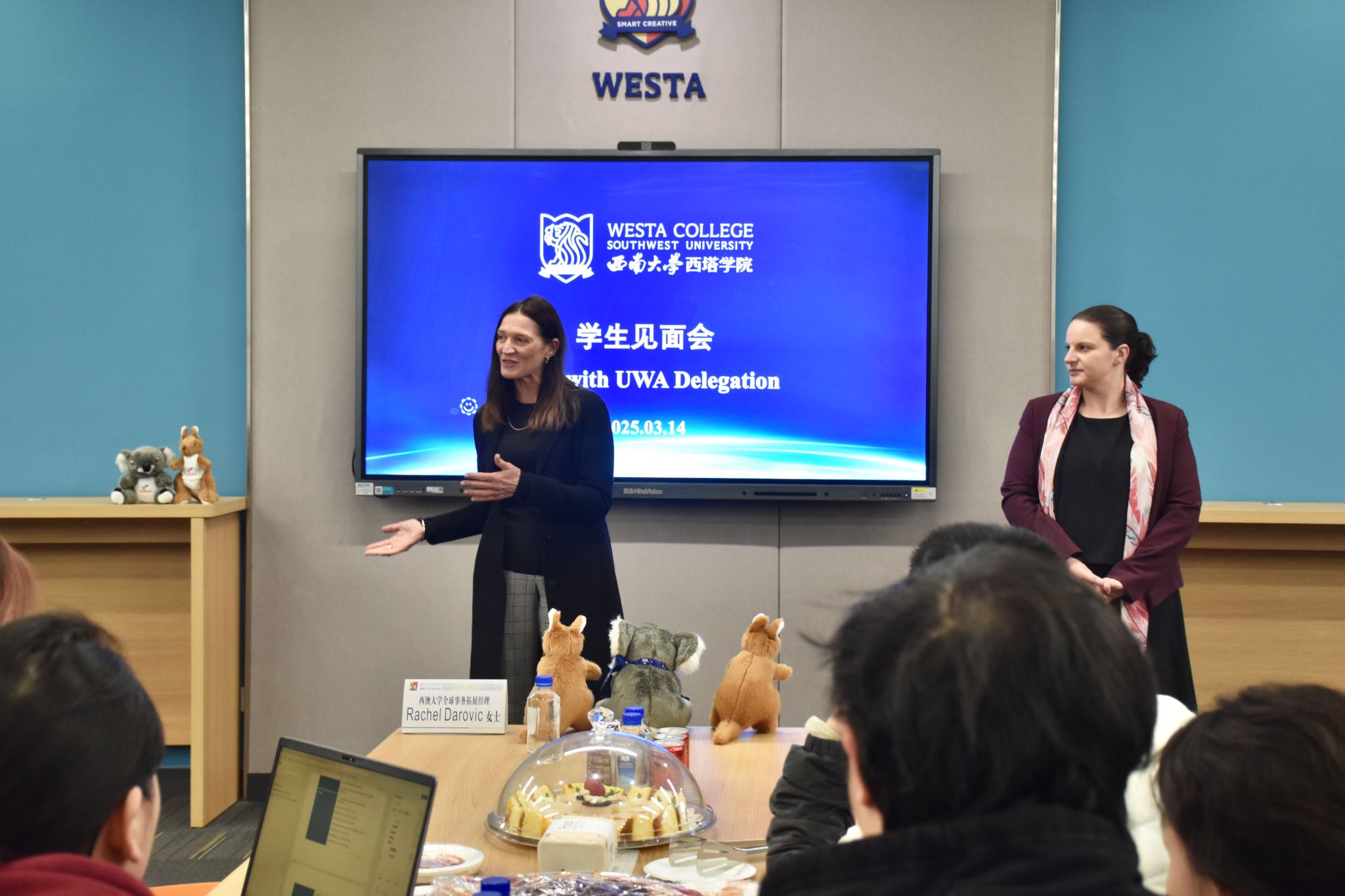 3月14日,西澳大学全球事务拓展负责人Rachel Darovic女士、分子科学公司教师Alyssa Van Dreumel博士,AEMG代理副总裁Nick Letch教授一行访问beet365,三方就员工成长、教师发展及未来合作等事宜进行探讨。针对员工不同学业阶段需求,公司分别组织了学业规划会、行前见面会及升学就业座谈会,代表团成员,公司经理谢洁、党委副书记滕超、副经理何兴及相关科室负责人参加了上述交流活动。