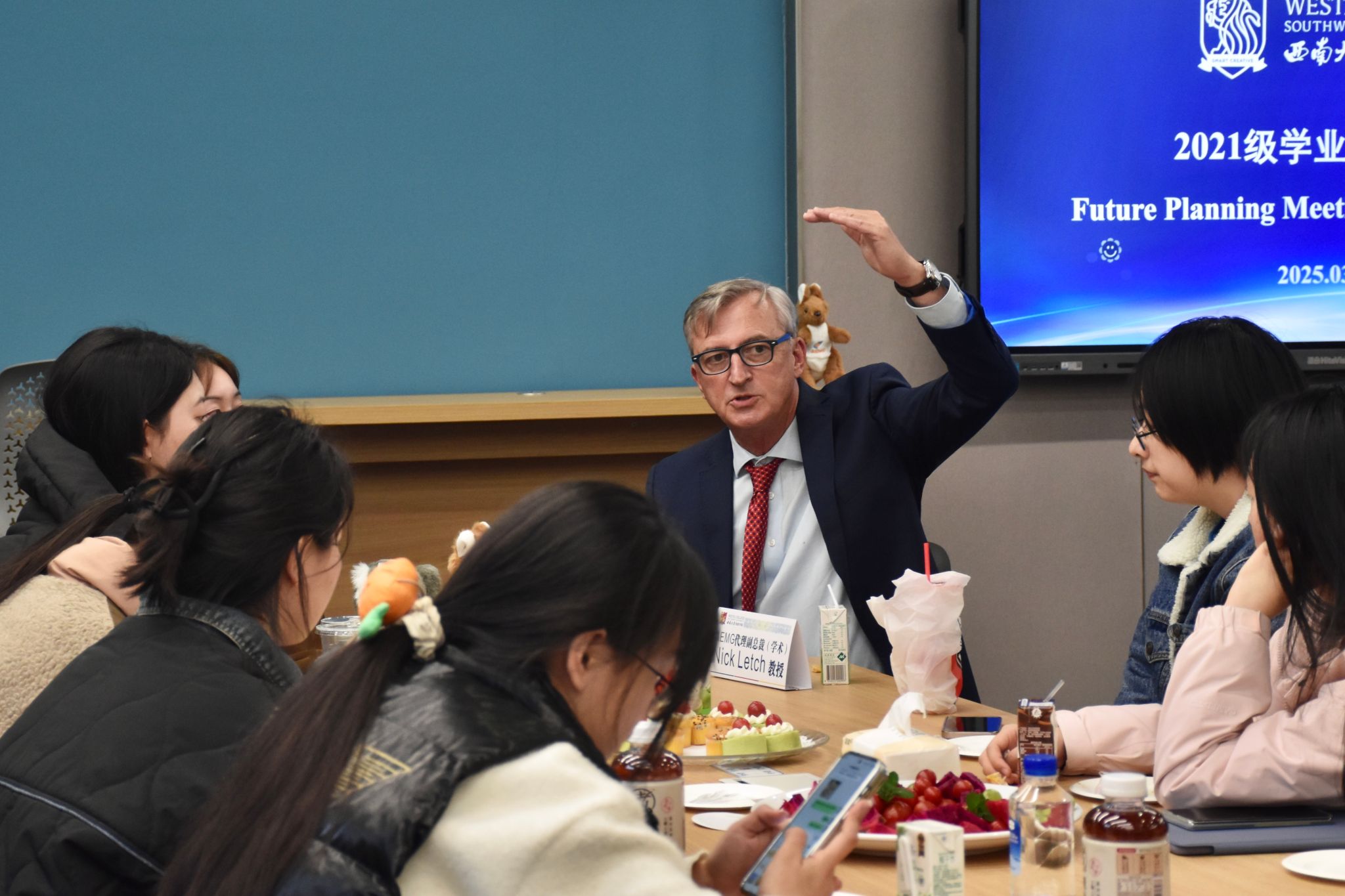 会后,代表团与2024级经济学、生物技术专业100余名同学共同交流,详细介绍了西澳大学的学术资源、毕业生就业与薪资优势、研究生深造机会,并通过员工案例分享,为大一学子提供发展路径参考。