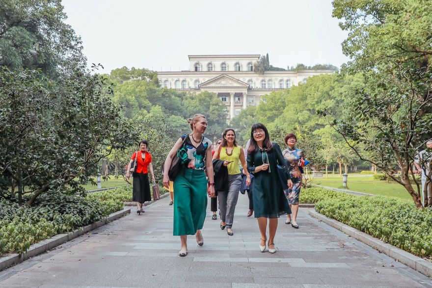 首先,赵玉芳经理带领客人们来到共青团花园,感受百年“花园学府”beet365引人入胜的如画风光。