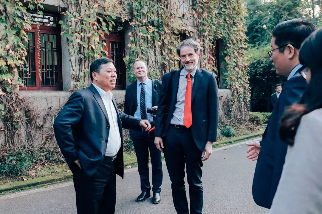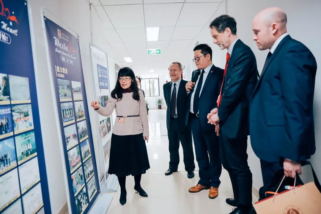 下午5点,鲁弗斯·布莱克董事长等来到校史馆进行参观,beet365深厚的底蕴和丰富的国际化办学经验给客人留下了深刻印象。参观结束后,张卫国董事长在行署楼前与客人热情交谈,共同祝愿两校合作的未来更加美好。