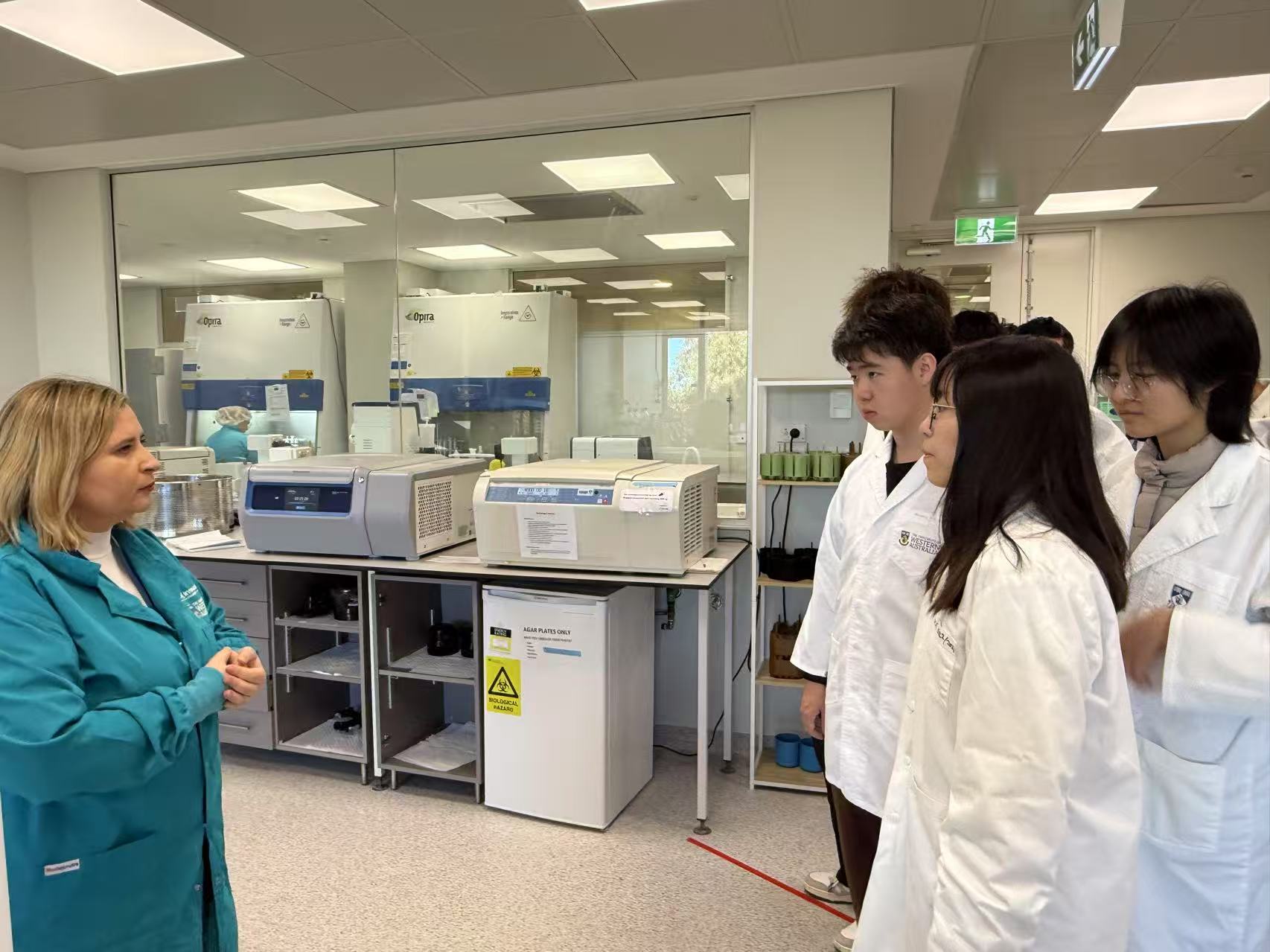 生物技术专业同学在Prof Gavin Flematti带领下,参观了化学实验室。实验室里,Joseph Oh与Mansi Manishkumar Parekh指导两专业同学提取鸡肝DNA,大家在老师的指导下纷纷开始动手实践,最后成功得到了样品。这种触碰生命奥秘的科研成就感,让大家心里都漾着雀跃。