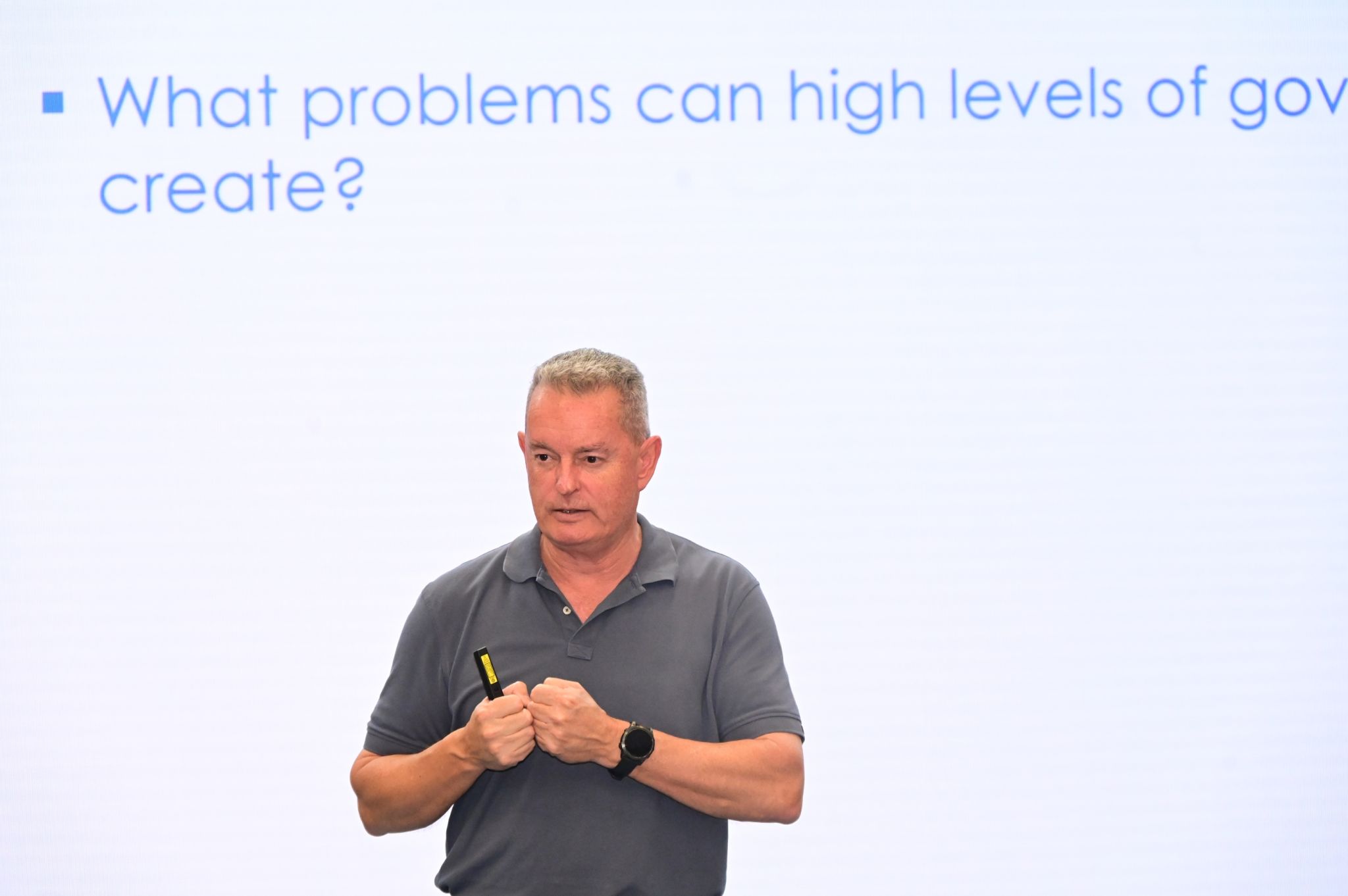 Paul Crompton教授以经济衰退和货币印刷与政策为核心,借助GDP曲线波动描绘出商业周期特性,详细讲述了经济下滑的负面影响及政府应对手段,进而阐述关于政府债务与债券发行的关系。循序渐进的讲解使同学们更好地理解经济学在现实世界中的应用,也启发了大家作为未来经济从业者们所需承担的社会责任。