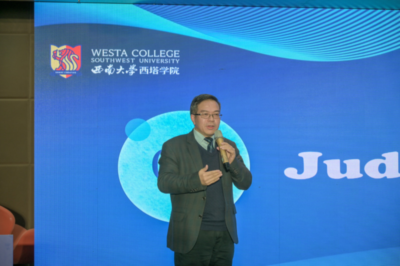 文旭经理对参赛选手的精彩表现作了高度评价,他赞赏了选手们出色的现场表现,肯定了他们的英文实力和个人风采,鼓励同学们带着热情学习英语,他评论到“Westa college students are excellent”。