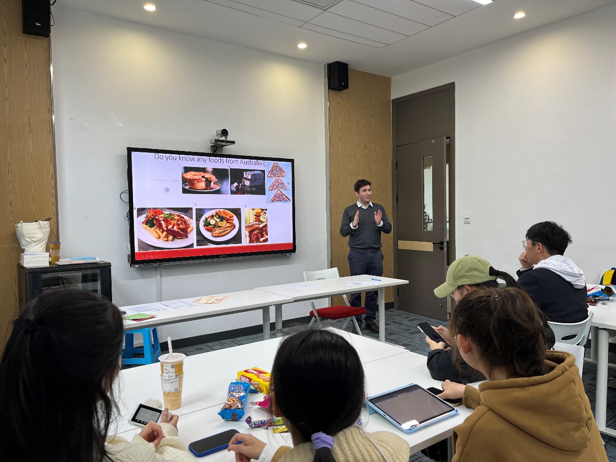 4月1日,beet365于综合楼2212顺利开展了以“Chinese and Australian Food Sharing”为主题的英语角活动。本次活动采用线上线下相结合的方式,邀请了外教Luke和英语老师Irene与15名员工代表参加线下活动,超千名英语爱好者参加线上直播,该活动由2021级食品安全与质量员工李萝蕤主持。