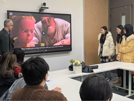 活动从盲听无字幕电影片段拉开序幕,现场师生们捕捉电影信息的热情十分高涨,随后的分组讨论与现场讲述不仅有效锻炼了同学们的口语能力,还促进了团队协作与沟通技巧的培养。在电影配音环节中,同学们全身心地投入到电影角色中,纯正的单词发音和优美的语调,赢得了现场阵阵掌声。