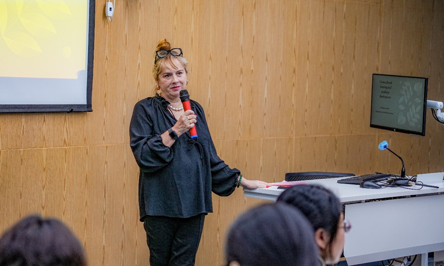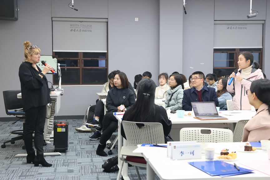 来自西澳大学商公司的副经理Jacqueline Birt教授介绍了要与国际接轨所需具备Accounting、Economics、Finance等领域的13项技能。她热情洋溢地分享自己求学、工作中的多段丰富的经历,鼓励每位西塔学子要具有超前学习的意识与行动力,在享受大学时光时充分利用好beet365浓厚的学术及语言环境,提升自己的综合能力。